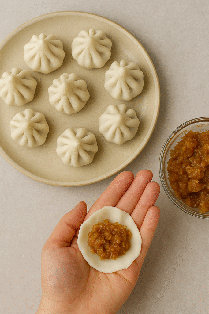Pro Tip: If the dough cracks while shaping, dip your fingers in water or ghee to smooth it out. Practice makes perfect with the pleating technique!